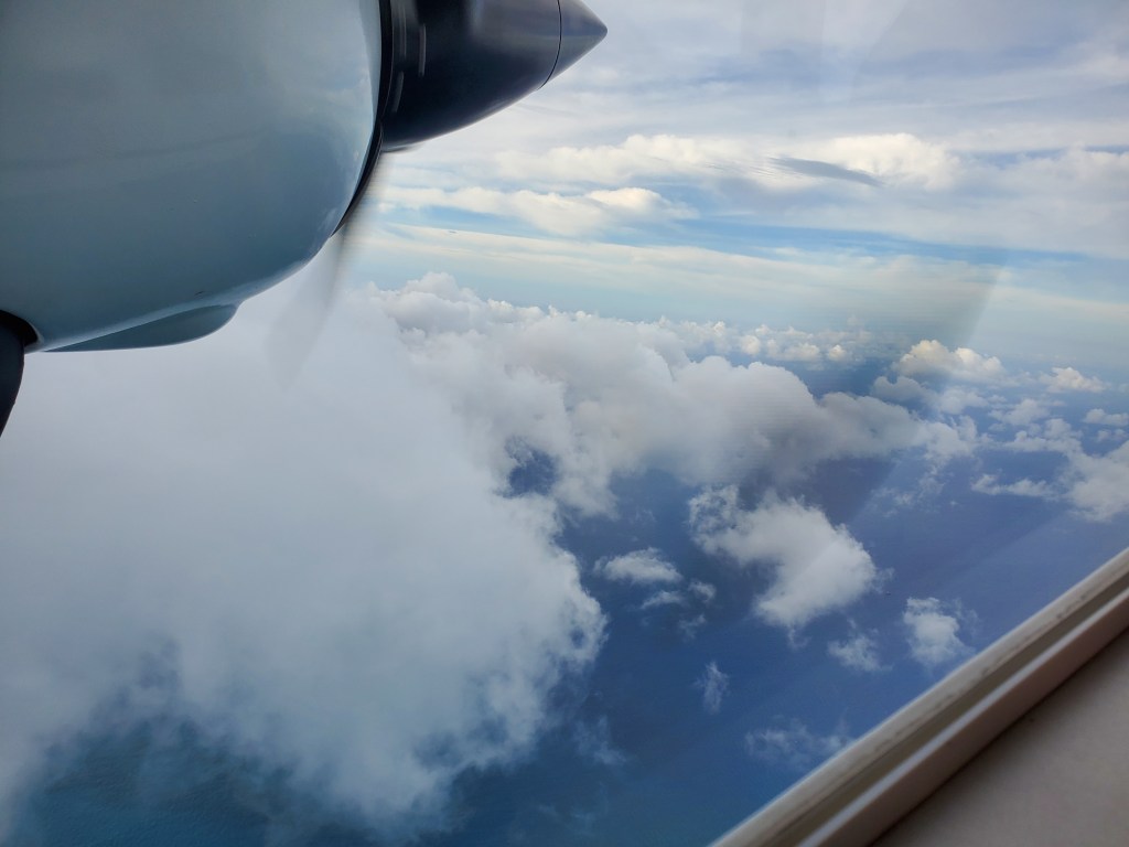 As usual, my case of badly-frayed nerves was for naught. The day dawned relatively cool and not-yet oppressively humid. And more importantly, it was clear skies across the Straits of Florida that link the Gulf of Mexico and Atlantic Ocean – just a vast aerial mountain ranges of handsome billowy white clouds above and gentle whitecaps on the dark blue sea below. No other planes or even ships were visible on this sunny June morning. Just seven tourists and a pilot on a loud little bench-seat propeller plane ten thousand feet in the sky, cruising along calmly at 130 nautical miles per hour (I could see the modern digital navigation touch screen), flying between two nations officially frozen in varying degrees of mutual distrust since 1961, or thirteen years before I was even born.