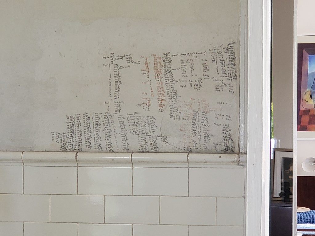 The guest house is adjacent to the main house, which is a single-story limestone structure built amid banana trees and tropical vegetation in 1886 by Spanish architect Miguel Pascual y Baguer. Photos posted online of the entrance – the unique but broken steps and entryway itself – reveal various stages of repair and decay. On this day, it was in rougher shape, with peeling dirty stucco contrasted against swaths of walls that looked far healthier. Hopefully, it’s mostly cosmetic issues. I was told the bones of the house itself are solid. It *is* still standing after 138 years in this harsh climate.