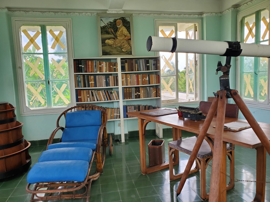 Also at the Finca Vigía is an airy writing tower – the stairs and railing are dubious – but he largely wrote in the main house. The tower now has some local art for sale, and locals who work there will take interior photos for you. From the tower and the house you can see Havana and the sea in the distance. It’s easy to understand why this home appealed to Hemingway.