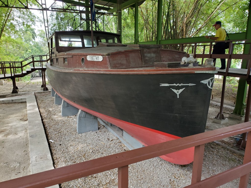 Down the hill behind the tower is a walkway that takes you past the big empty swimming pool, which may have last been filled for the 2015 movie “Papa: Hemingway in Cuba” and now is in dire need of repairs. Adjacent to that, on what had been a tennis court, is Hemingway’s famed 38-foot wooden fishing boat, the Pilar, which sits mounted on blocks for visitors to view from a platform. It’s been repaired over the years, but also is looking tired.