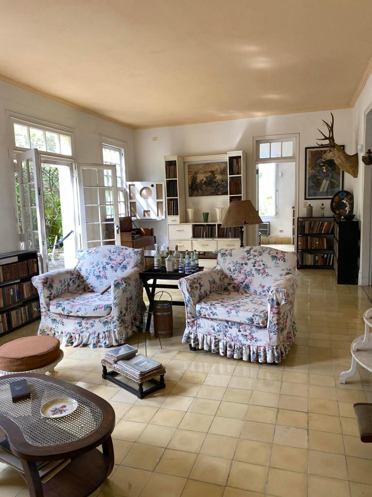It’s often said the interior of the Finca Vigía is as the Hemingways left it in 1960. That’s somewhat true, but the many photos taken over the decades, particularly of the main room, show that the furniture, empty booze bottles, magazines in racks, and other minor items have changed or been moved around. Which isn’t especially surprising, considering it’s been 64 years and a number of clean-up and restoration efforts have taken place, along with a movie shoot and other functions.