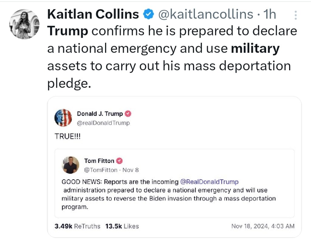 Do you see the current Supreme Court as willing to enforce anything Trump opposes? I do not. Today, at 4 a.m., he reaffirmed he will declare a national emergency and use the active-duty military to round up millions of people to put into concentration camps and deport. That will be challenged in court, but if SCOTUS ruled against him, would it matter?