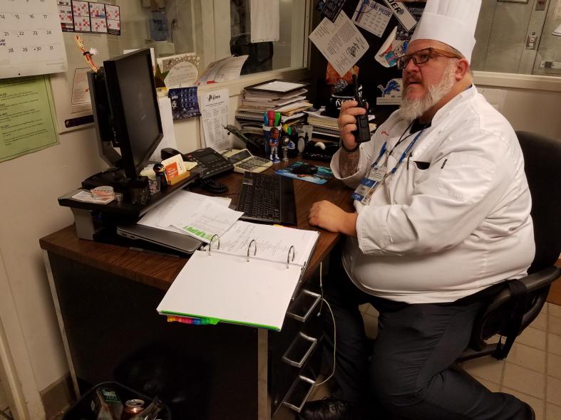 Ford Field executive chef Joe Nader working in his office during a game at Ford Field in 2016. Nader passed away in 2023.