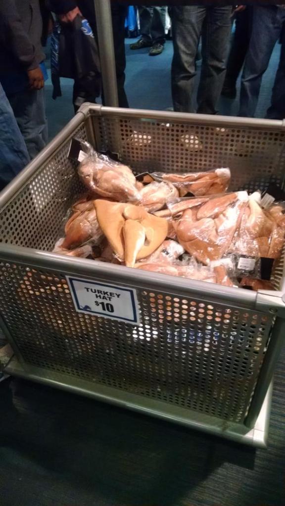 One very dumb item I search for each Thanksgiving at the stadium are the goofy felt turkey hats. They were $10 in 2014. A few years later, the price was upped to $17. Now, they $39.99 and of lesser size and quality.