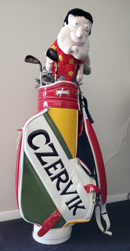 My Al Czervick “Caddyshack” golf bag. It doesn’t include a radio or bar tap, unfortunately.