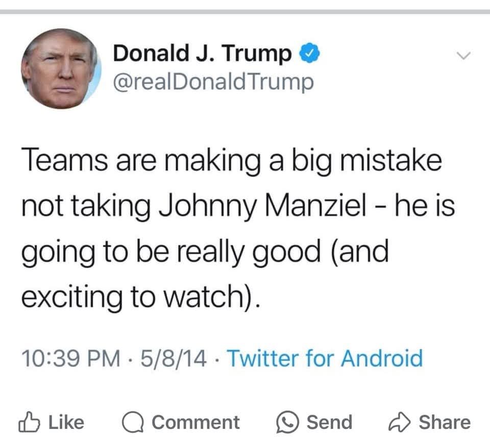 UPDATE: I forgot Trump has a history of promoting quarterbacks for the Browns. Weirdo.