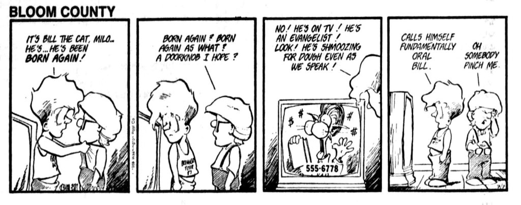 That said, Swaggart and his ilk did inspire Bloom County’s “Fundamentally Oral Bill” storyline in 1987.