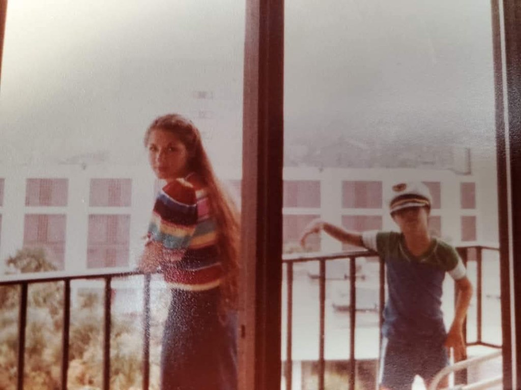 Lysa and me on the porch of our room at the Caravelle hotel in Myrtle Beach in the 1980s, where we stayed every trip. Those were some of my best childhood memories.