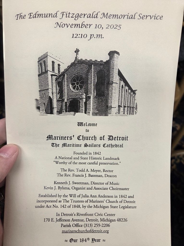 Two decades after that Queen Mary 2 journey, on Monday of this week, I attended the 50th anniversary memorial service for the 29 crewman that died when the SS Edmund Fitzgerald sank in a violent storm on Lake Superior on Nov. 10, 1975.